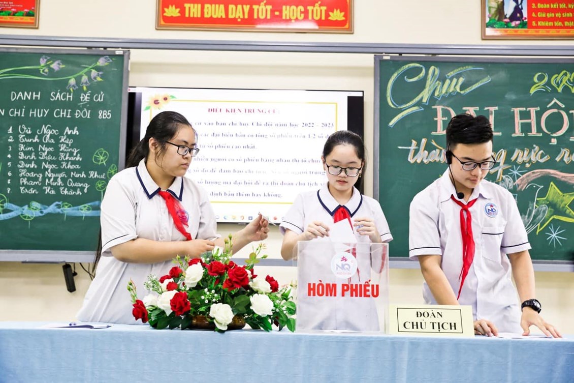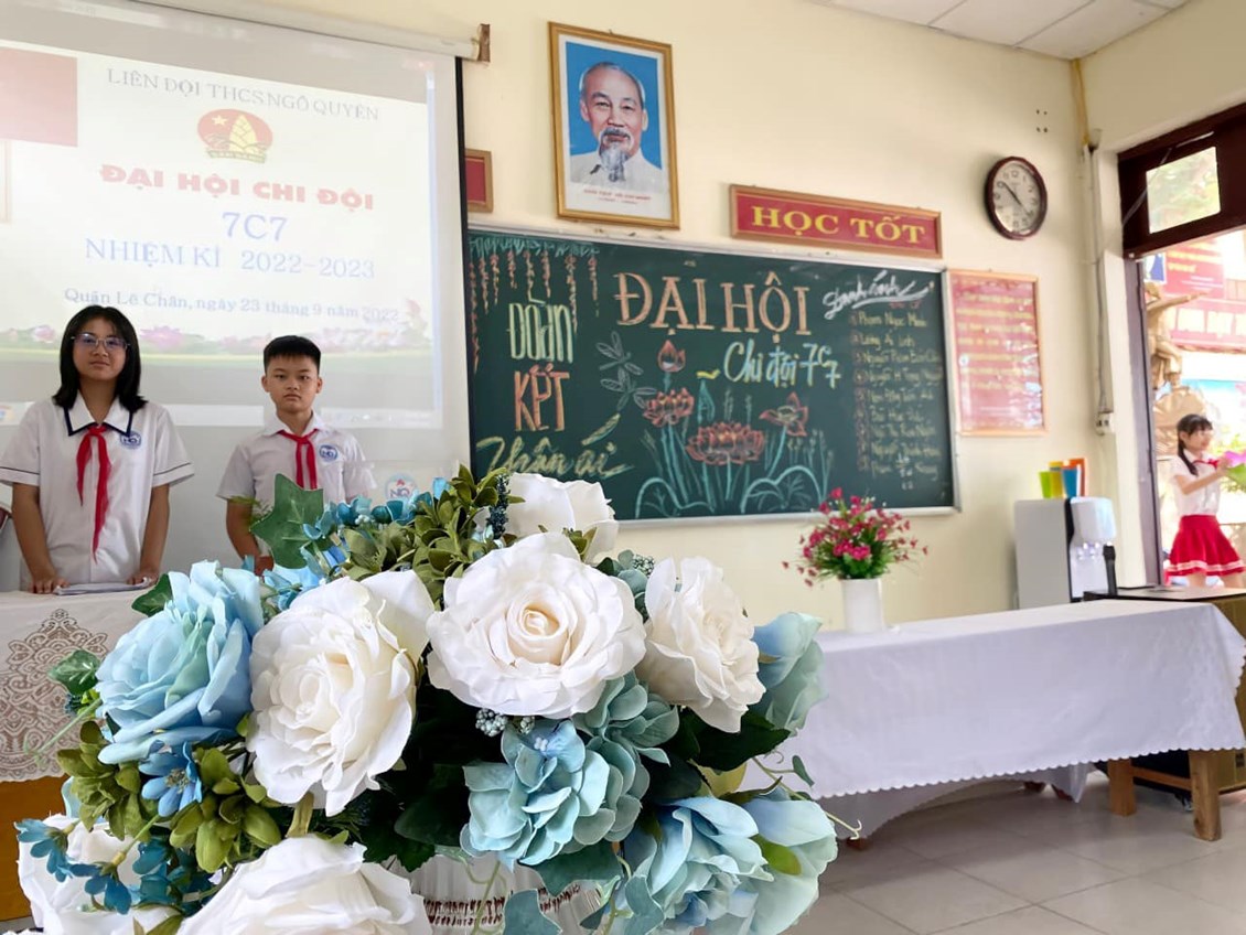 Hòa chung không khí vui tươi cùng thiếu nhi cả nước chào đón năm học mới, thực hiện kế hoạch công tác Đội và phong trào thiếu nhi năm học 2022 – 2023, ngày 23/9/2022 chi đội 7C7 và 8B5 của Liên đội THCS Ngô Quyền tổ chức đại hội chi đội điểm. Với tinh thần đoàn kết – sáng tạo – nghiêm túc, các chi đội đã chuẩn bị chi tiết, kĩ lưỡng nội dung chương trình đại hội. Về dự cùng đại hội chi đội điểm có cô Phó hiệu trưởng Hứa Thanh Mai, cô Phó hiệu trưởng Vũ Thị Xuân; cô Tổng