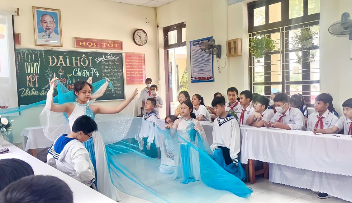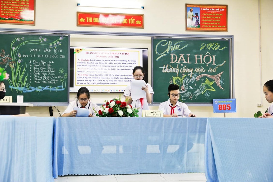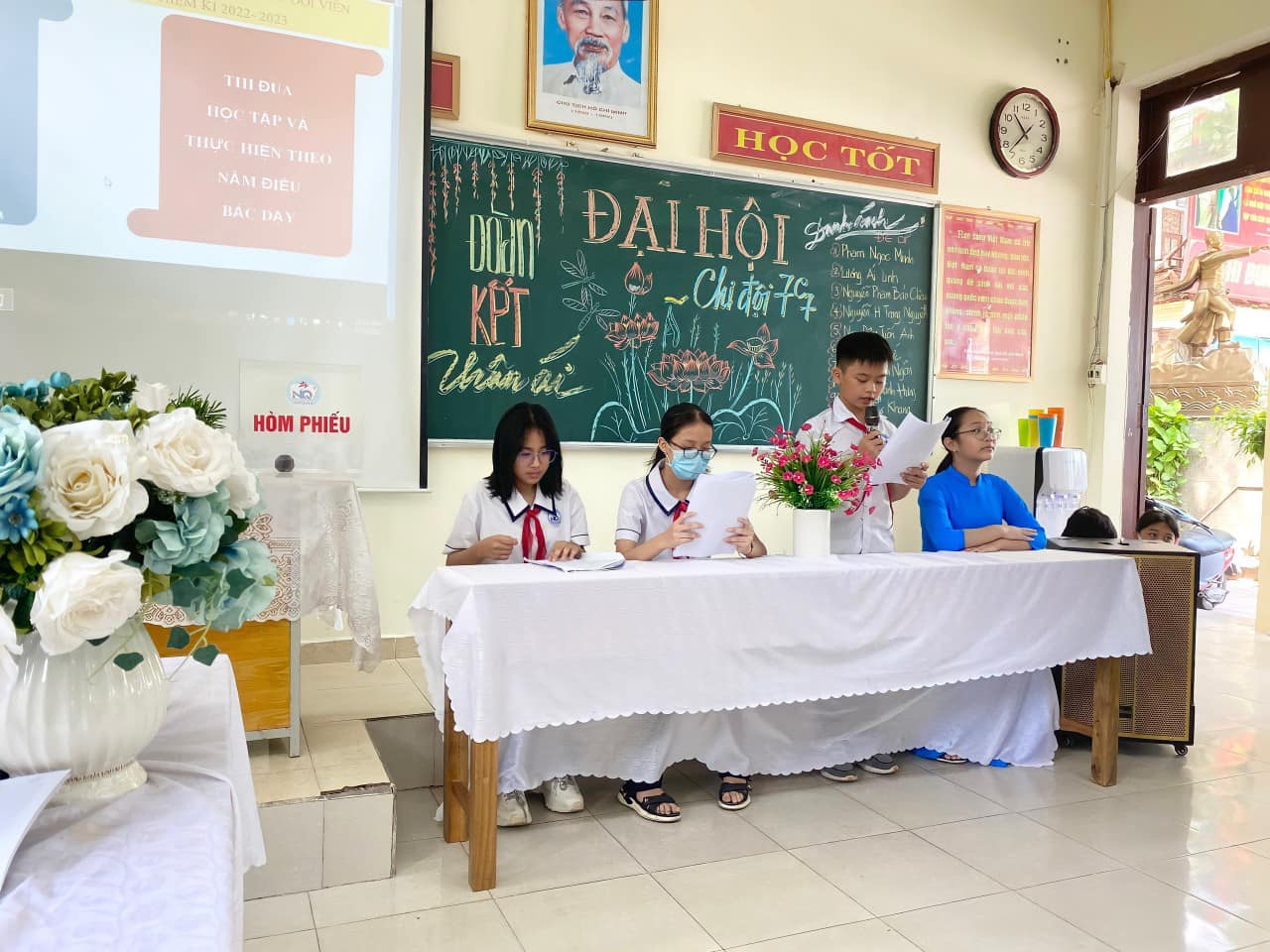 phụ trách Nguyễn Thị Thanh Hoa, cô Phó tổng phụ trách Mai Thị Bình. Phát biểu chỉ đạo tại Đại hội, các cô đã thay mặt nhà trường ghi nhận sự cố gắng cùng những thành tích trong học tập, hoạt động đội của hai chi đội; đồng thời giao nhiệm vụ cho các chi đội cùng phấn đấu thực hiện tốt nhiệm vụ năm học 2022 – 2023, đạt được các chỉ tiêu thi đua đã đề ra, góp phần vào phong trào thi đua Dạy tốt – Học tốt của nhà trường.