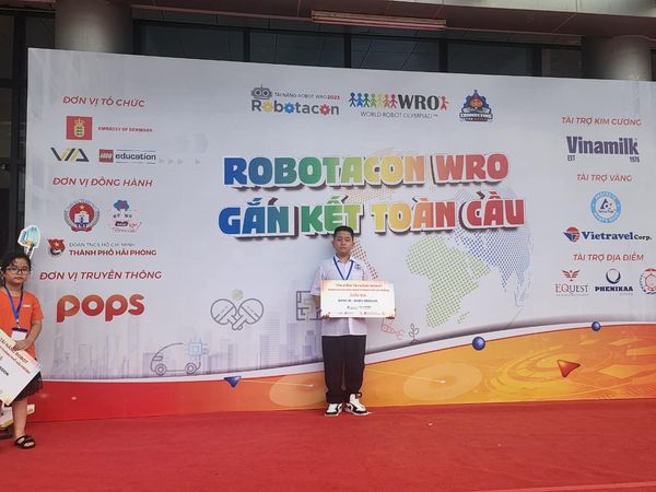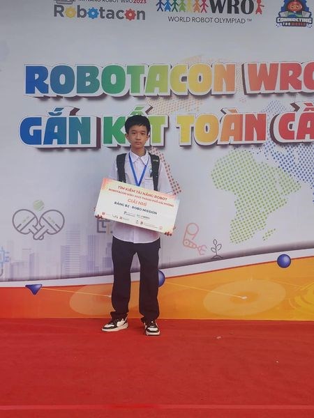 - Em Nguyễn Tài Gia Vỹ, lớp 6D5 với sản phẩm: “Robot Cứu hộ môi trường biển - Giải cứu cá Voi” đoạt giải Ba Bảng B1- ROBO MISION