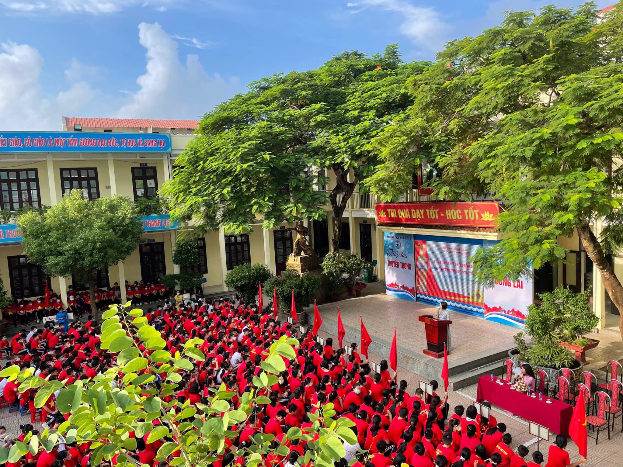 Trong không khí vui mừng, phấn khởi chào đón năm học mới; trong sắc trời dịu nhẹ, trong xanh của mùa thu, hôm nay, ngày 12/9/2022, Liên đội Trường THCS Ngô Quyền đã tổ chức Lễ chào cờ tháng 9 với chủ điểm “Truyền thống nhà trường”.