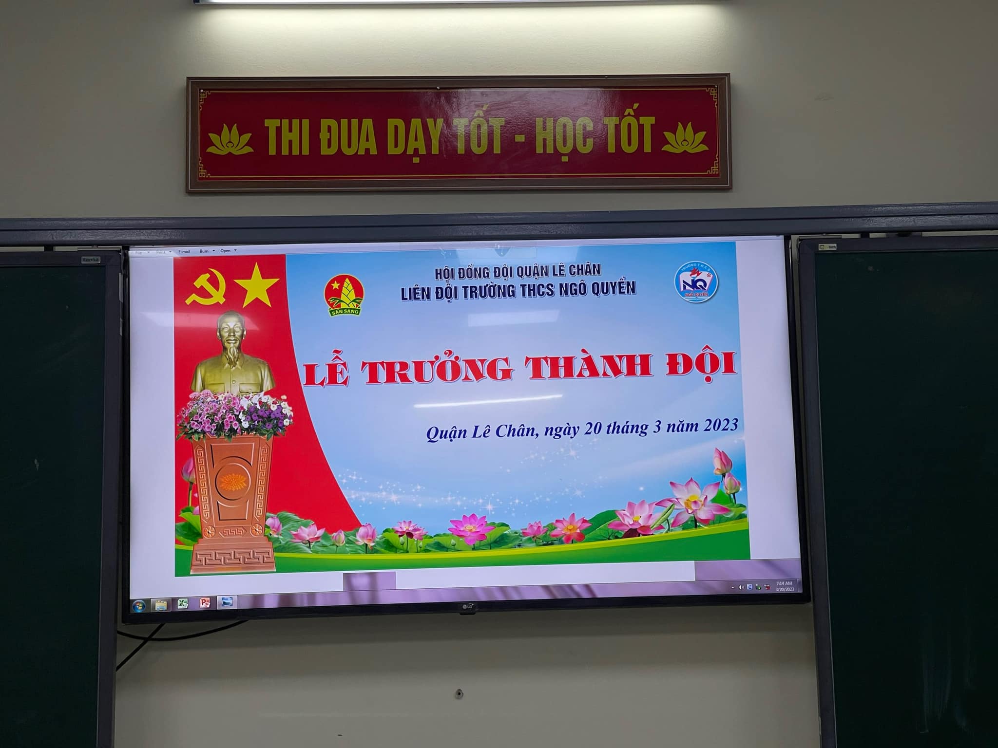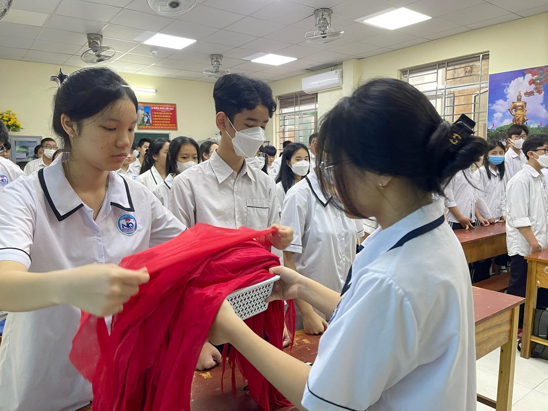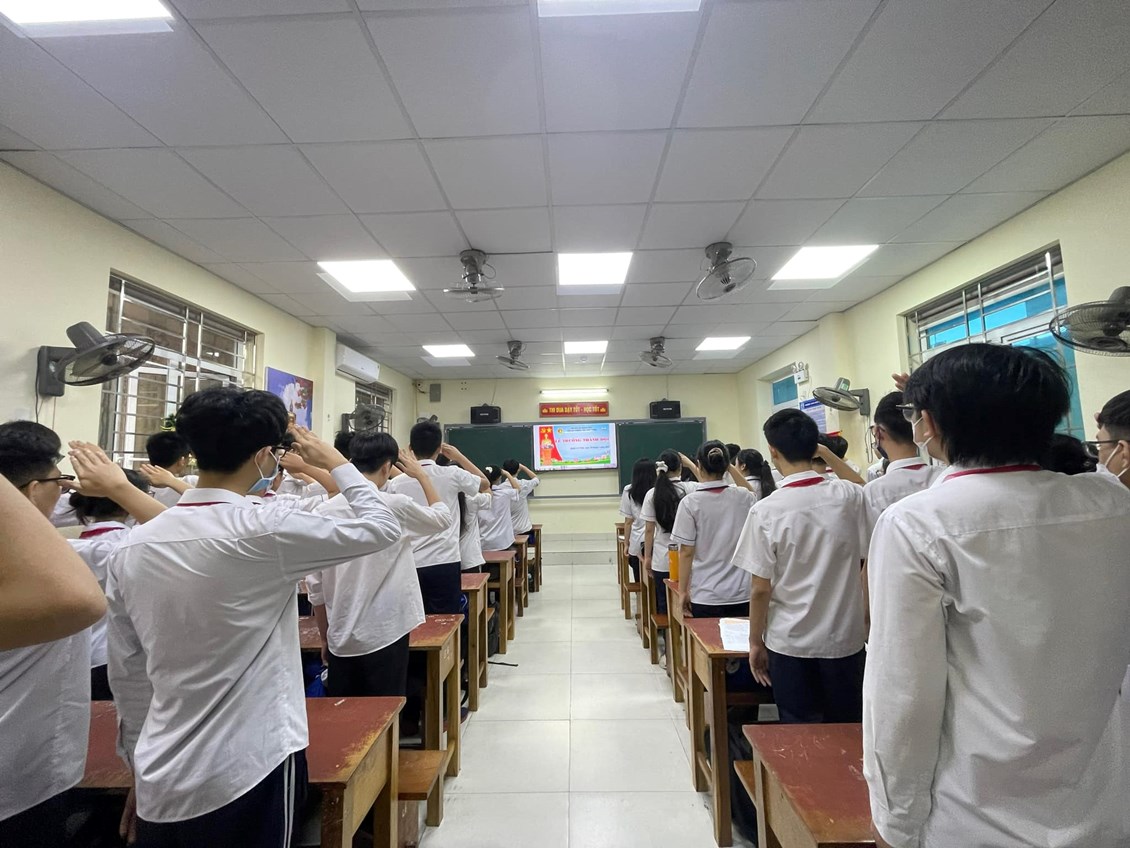 lễ trưởng thành Đội cho 626 học sinh khối 9. Do điều kiện nhà trường đang xây dựng, buổi lễ được tổ chức an toàn, tiết kiệm tại các phòng học có kết nối loa âm thanh và camera với nhà trường.
