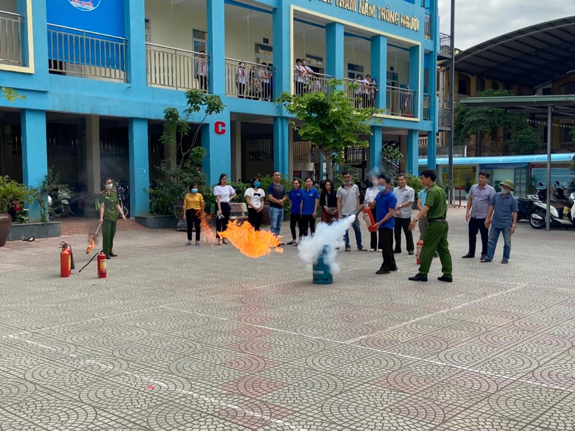 Tại buổi tuyên truyền, cán bộ, giáo viên và học sinh nhà trường được cán bộ Đội Cảnh sát PCCC&CNCH - Công an quận Lê Chân tuyên truyền, phổ biến nội dung kiến thức cơ bản về công tác đảm bảo an toàn PCCC&CNCH như: Khái quát tình hình cháy nổ trên địa bàn thành phố trong thời gian qua; nguyên nhân của các vụ cháy nổ; kỹ năng thoát nạn trong đám cháy; các bước xử lý khi có sự cố cháy, nổ xảy ra…Ngoài ra cán bộ, giáo viên và học sinh cũng được hướng dẫn thực hành cách sử dụng một số phương tiện chữa cháy, CNCH thông thường (bình chữa cháy xách tay…)đồng thời đưa ra các tình huống giả định để cán bộ, giáo viên, học sinh trao đổi, học hỏi thêm kinh nghiệm.