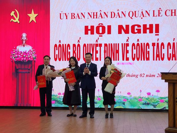 Chiều ngày 15/2/2023, UBND quận Lê Chân tổ chức Hội nghị công bố các Quyết định về công tác cán bộ