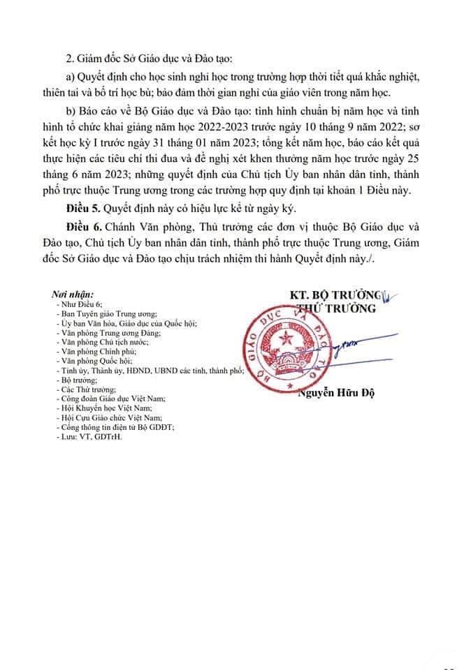 Kết thúc Học kỳ I trước ngày 15/01/2023; hoàn thành kế hoạch giáo dục Học kỳ II trước ngày 25/5/2023 và kết thúc