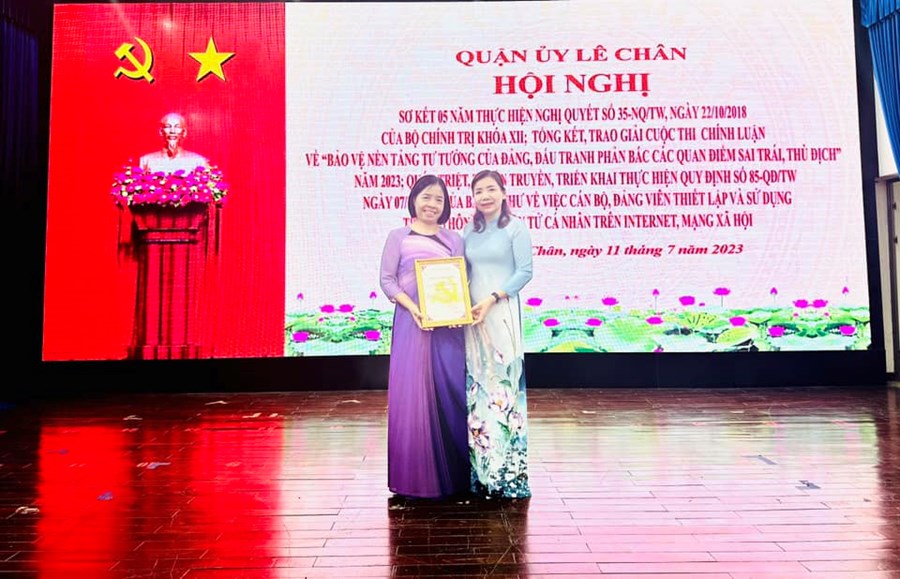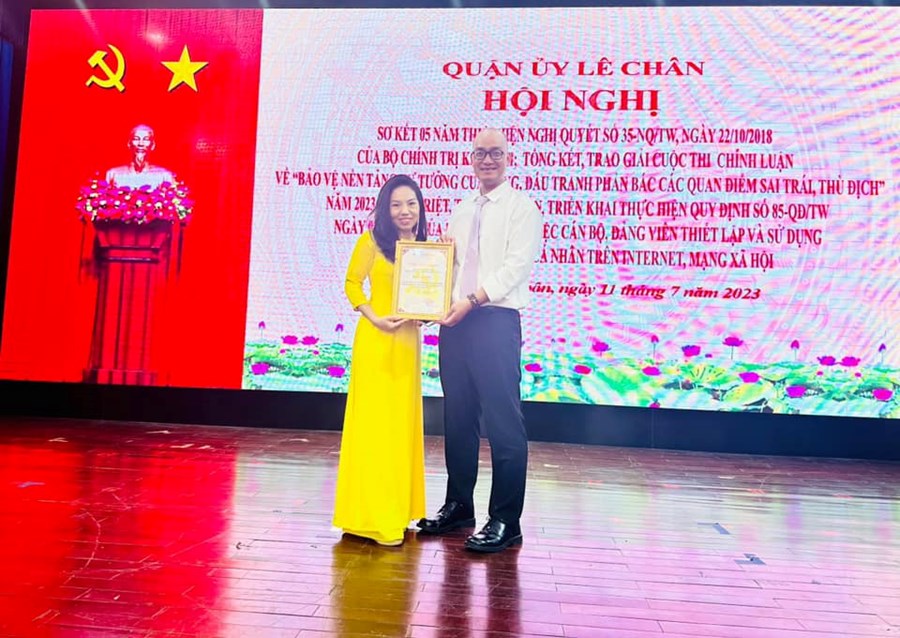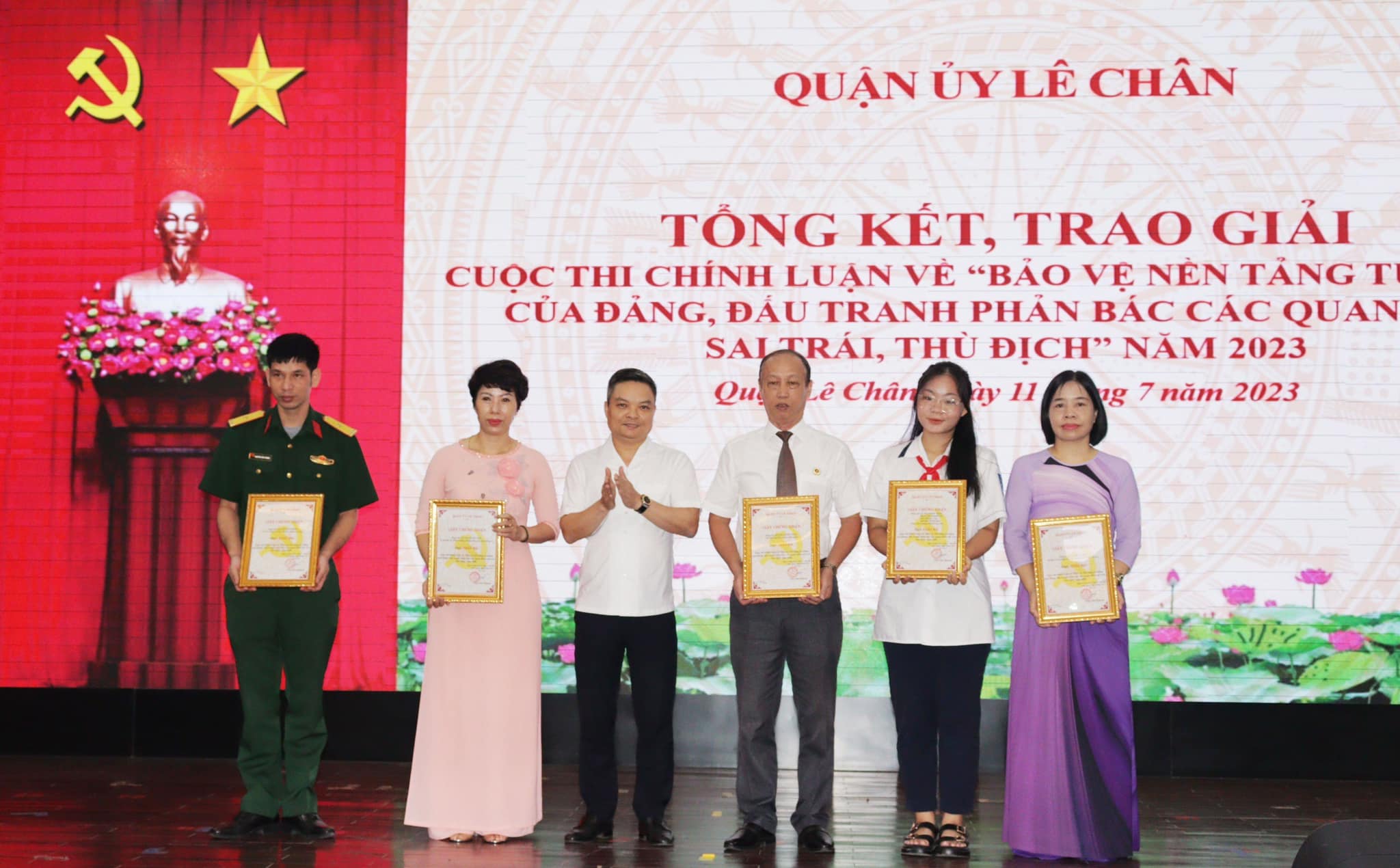 Sáng nay, ngày 11/7/2023, Quận uỷ Lê Chân đã tổ chức tổng kết và trao giải cuộc thi Chính luận về “ Bảo vệ nền tảng tư tưởng của Đảng, đấu tranh phản bác các quan điểm sai trái, thù địch” năm 2023