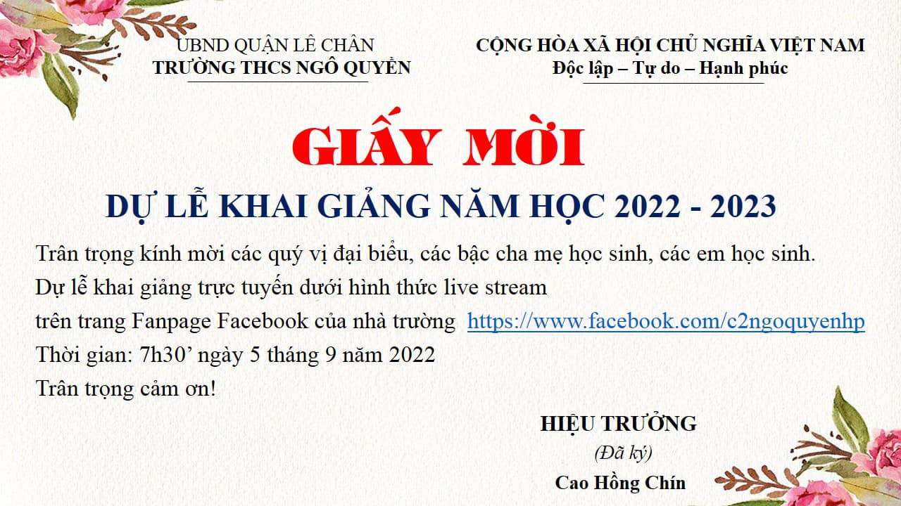 Chính vì vậy, nhà trường sẽ tổ chức Lễ khai giảng trực tuyến trên trang fanpage của trường, trân trọng kính mời quý phụ huynh và tất cả các em