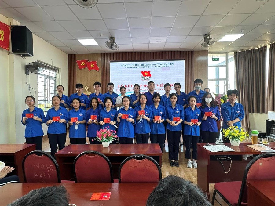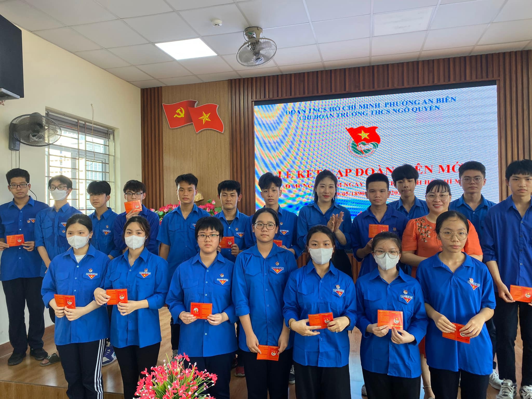 Thực hiện chương trình công tác Đoàn và phong trào thanh thiếu nhi năm 2023, hướng tới kỷ niệm 133 năm ngày sinh chủ tịch Hồ Chí Minh ( 19/5/1890- 19/5/2023), chiều ngày 18/05/2023 Chi đoàn giáo viên trường THCS Ngô Quyền đã tổ chức lễ kết nạp đoàn viên mới đợt 2 cho 63 thanh niên ưu tú, có thành tích xuất sắc trong học tập.