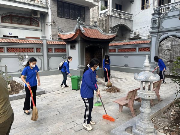gia hoạt động có các cô giáo trong Chi đoàn và các em học sinh lớp 8B2 cùng tổng dọn vệ sinh môi trường khuôn viên Đình An Biên và ngõ 170 Hai Bà Trưng. Đây là một hoạt động vô cùng thiết thực và có ý nghĩa trong dịp tổ chức Lễ hội truyền thống Nữ tướng Lê Chân.