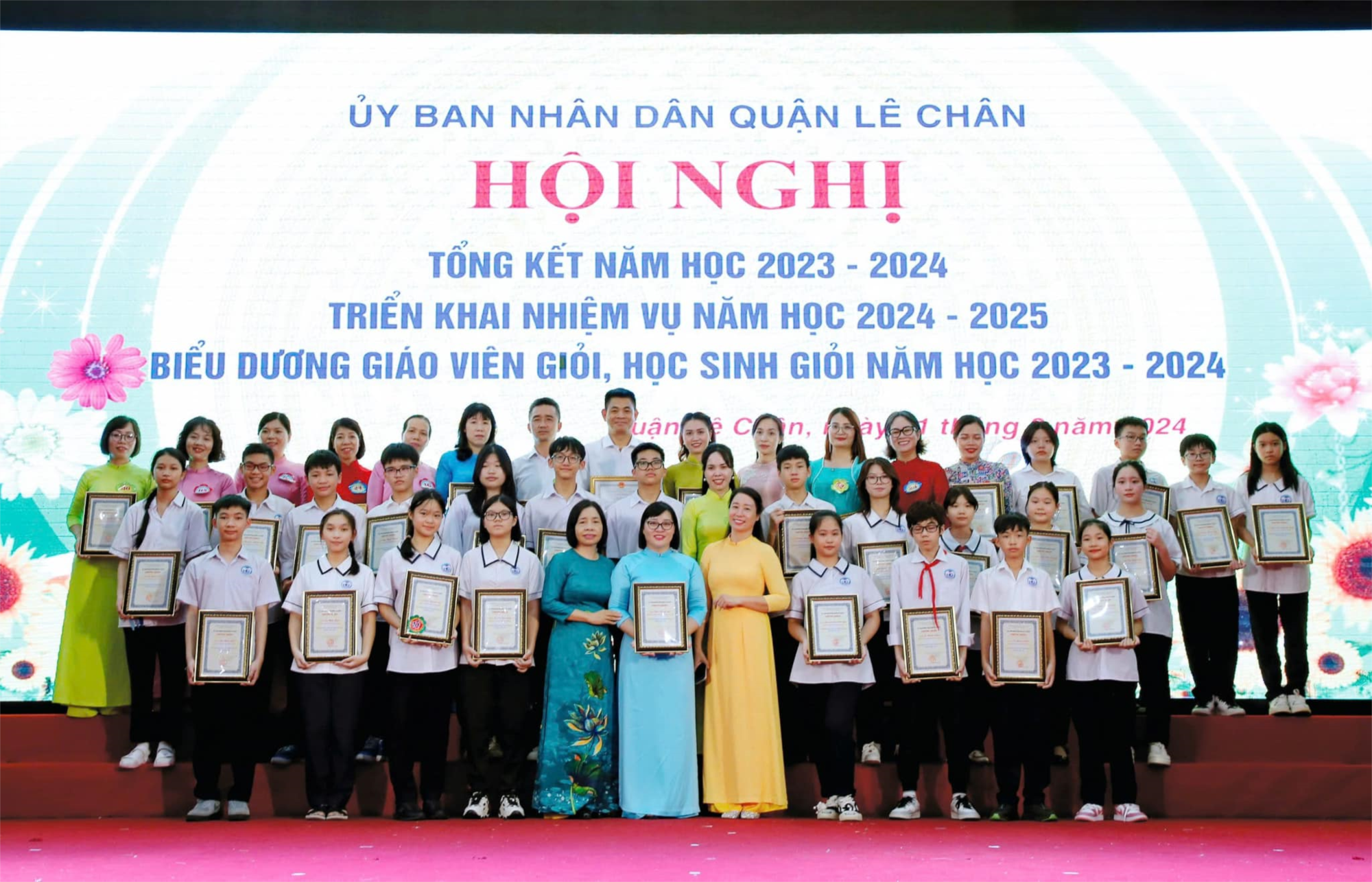 Sáng 21/8/2024, Uỷ ban nhân dân quận Lê Chân (Hải Phòng) tổ chức Hội nghị tổng kết năm học 2023 - 2024; triển khai nhiệm vụ năm học 2024 - 2025; biểu dương giáo viên giỏi, học sinh giỏi năm học 2023-2024. Tại Hội nghị, tập thể nhà trường và nhiều thầy cô giáo, các em học sinh được vinh dự biểu dương, khen thưởng.