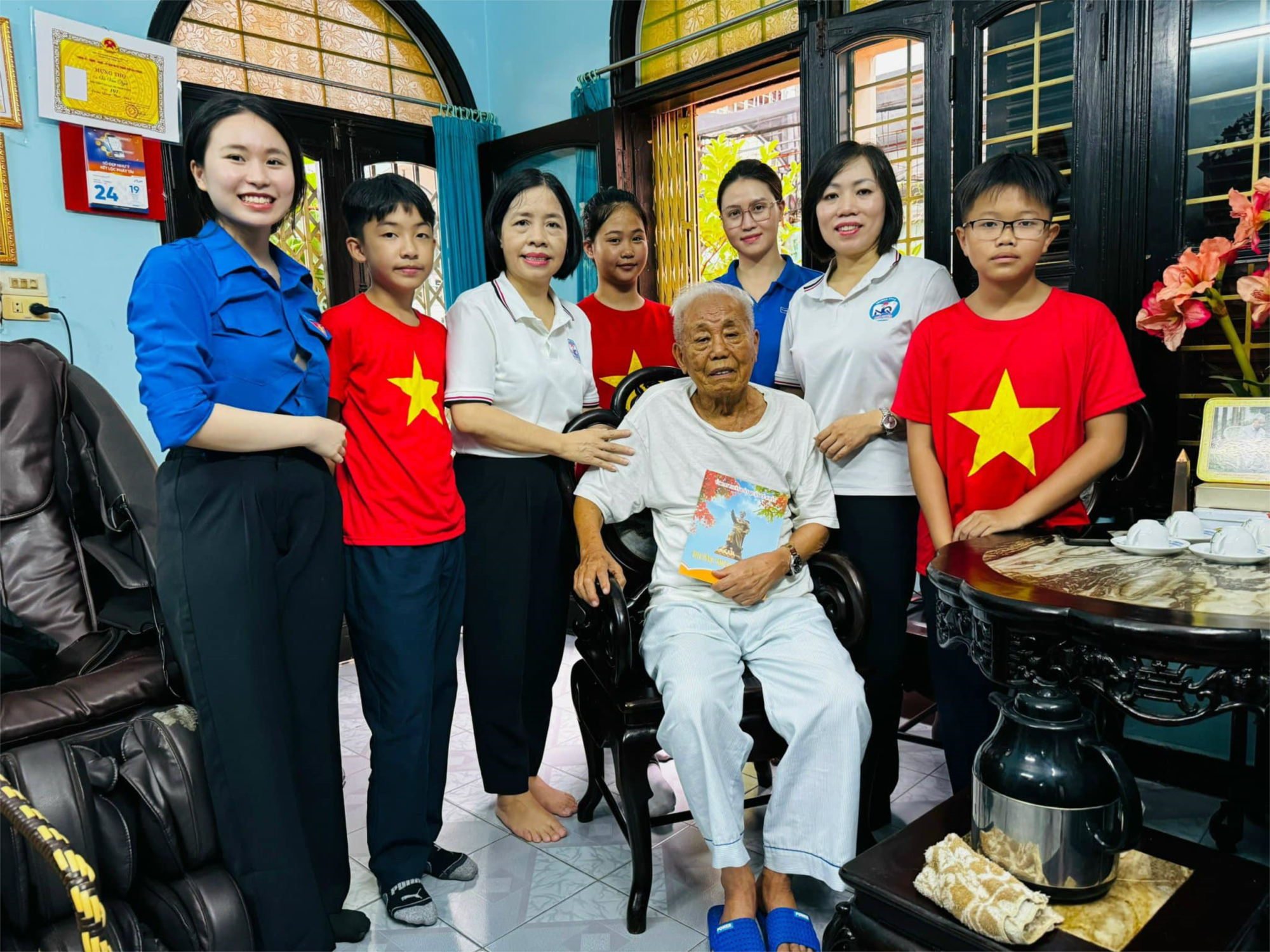 Nhân kỷ niệm 77 năm Ngày Thương binh Liệt sĩ, sáng nay, ngày 25/7/2024, đại diện cán bộ, giáo viên, học sinh Trường THCS Ngô Quyền đã đến thăm cụ Vũ Văn Ngữ, lão thành cách mạng với 102 tuổi đời, 76 năm tuổi Đảng tại số nhà 14, ngõ 11, Hai Bà Trưng, phường An Biên, quận Lê Chân, thành phố Hải Phòng.