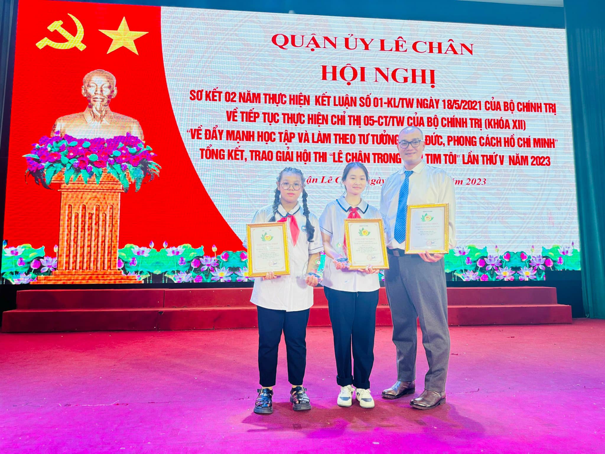 Nội dung thi trắc nghiệm: “ Hải Phòng làm theo lời Bác”, học sinh nhà trường đã đạt 2 giải: