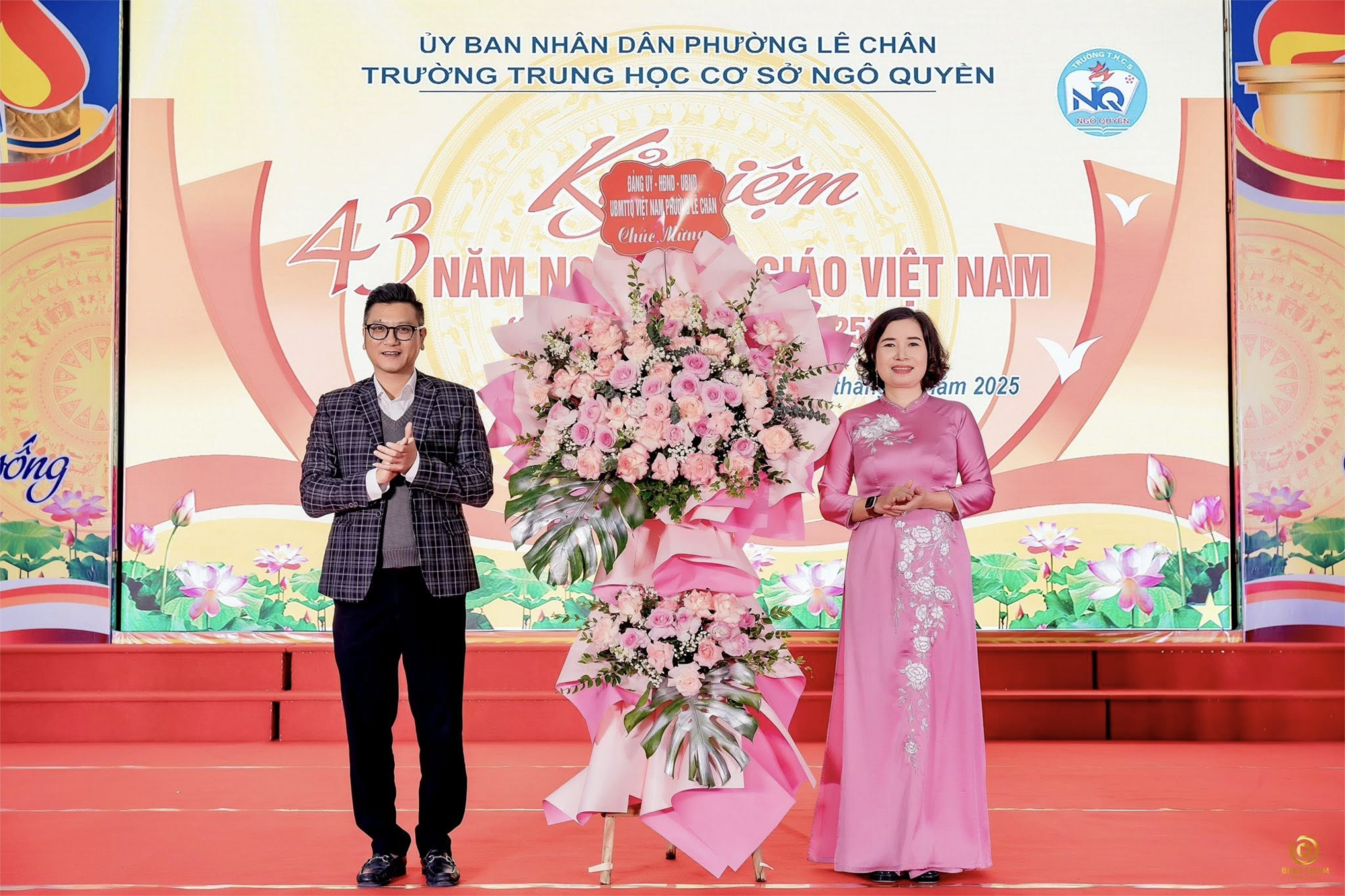 , Trường THCS Ngô Quyền long trọng tổ chức Chương trình Kỷ niệm 43 năm Ngày Nhà giáo Việt Nam 20/11 trong không khí trang trọng, ấm áp nghĩa tình. Cái lạnh giá ngoài trời như được xua tan bởi tình cảm chân thành, sự gắn kết và lòng biết ơn lan tỏa giữa đại biểu, thầy cô và học sinh tham dự chương trình