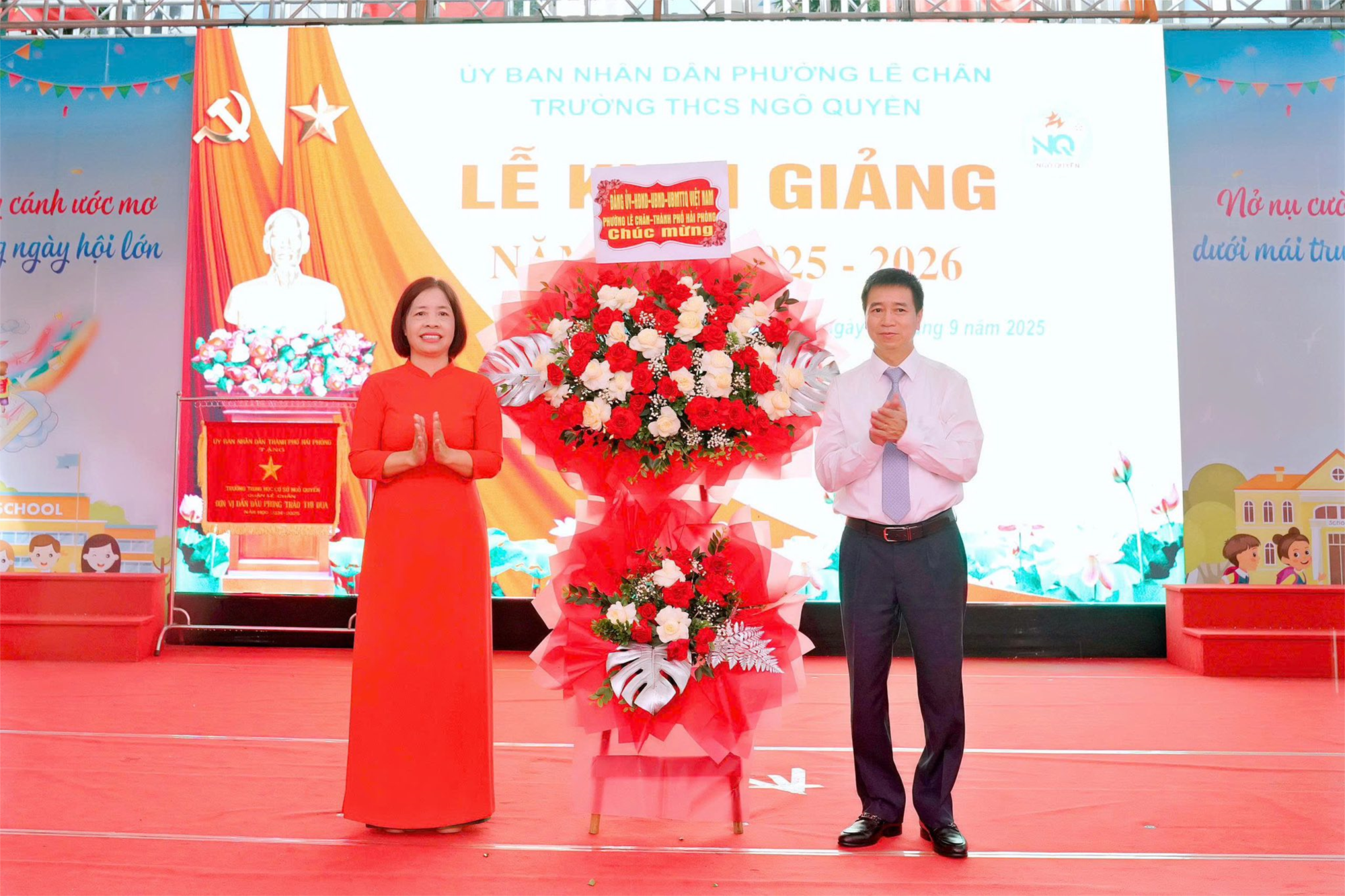 Sáng 05/9/2025, hòa chung niềm vui, tự hào kỷ niệm 80 năm Cách mạng tháng Tám và Quốc khánh 2/9, 80 năm thành lập Bộ Giáo dục & Đào tạo, thầy và trò Trường THCS Ngô Quyền, phường Lê Chân (Hải Phòng)