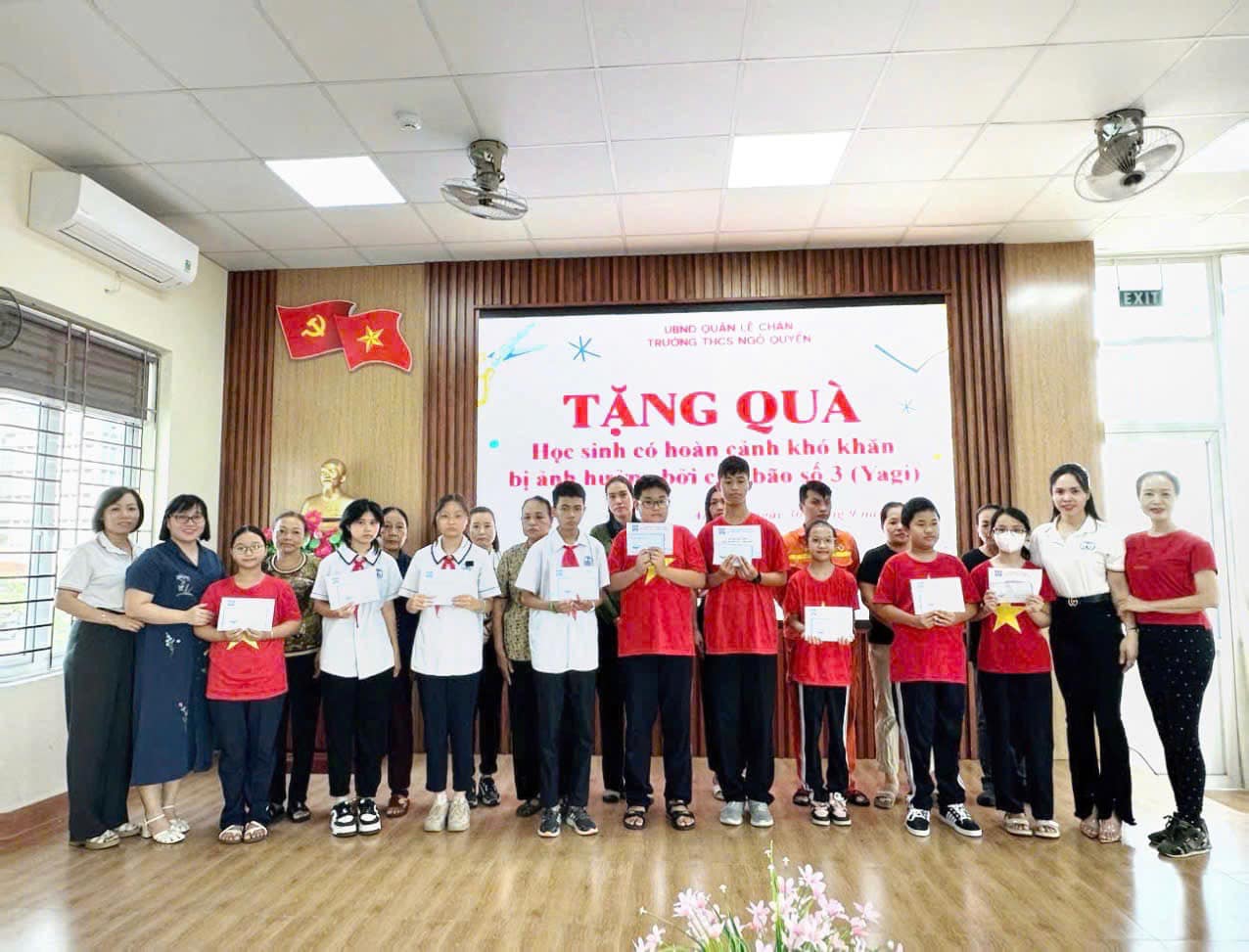 ủng hộ, gây quỹ để hỗ trợ cho các em học sinh nhà trường và ủng hộ Nhân dân vùng khó sau bão theo lời kêu gọi của Uỷ ban Mặt trận Tổ quốc Việt Nam quận Lê Chân.