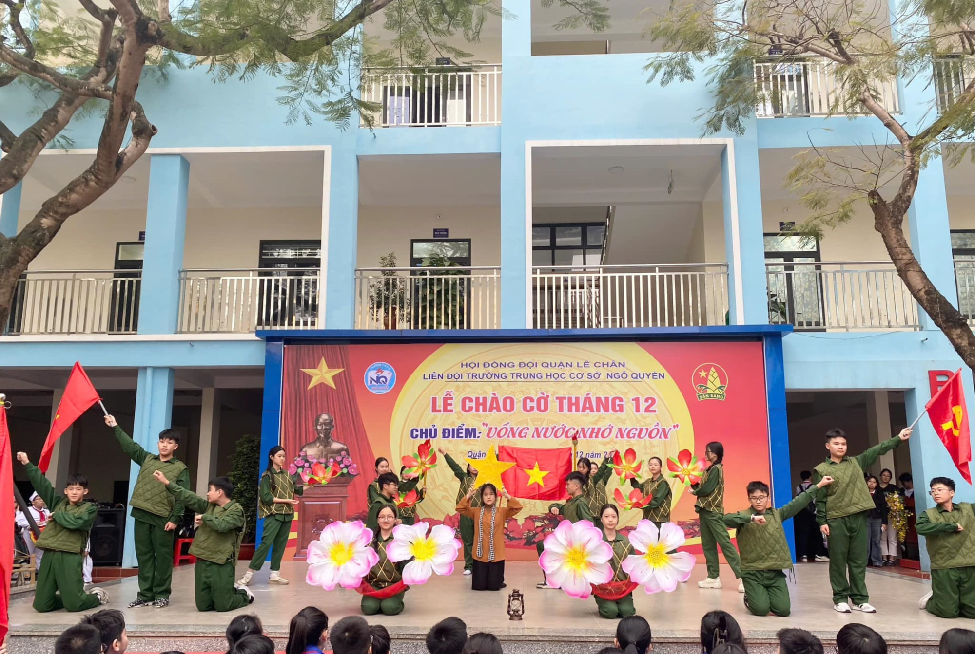 Ngày 9/12/ 2024 Liên Đội trường THCS Ngô Quyền tổ chức lễ chào cờ tháng 12 với chủ điểm "Uống nước nhớ nguồn". Mở đầu chương trình là các tiết mục văn nghệ tới từ các chi đội 8B6, 6D8 và nhóm văn nghệ xung kích của nhà trường chào mừng 80 năm ngày thành lập Quân đội Nhân dân Việt Nam.
